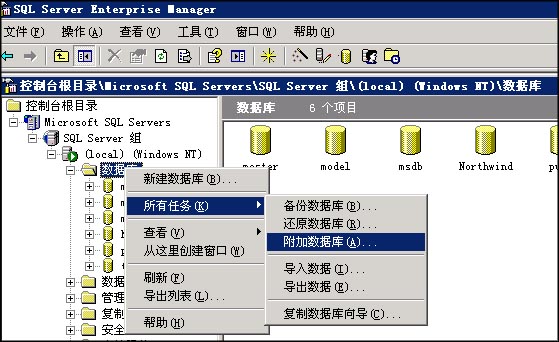 首先将您的数据库mdf和ldf文件上传到服务器的某个目录(一般不要放在系统盘,以免系统损坏造成数据丢失),比如d:\mssql目录,并给该目录mssqluser的完全控制权限。