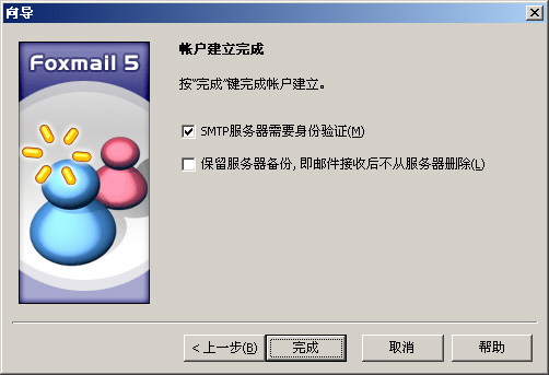 设置SMTP服务器身份验证:选中“SMTP服务器需要身份验证”选项;单击“完成”按钮保存您的设置;