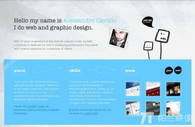 单页布局将会驱使你去把不必要的信息删除。目前这个潮流将会抛弃那些古怪的导航,并使之影响国变得更加小(this trend will move away from the quirky navigation and become more minimal in its approach.)。可以这类风格的网页想成商业名片。这些网站将会更像一站式商店,在那里有你和你在各式各样网站上的作品(比如你的博客和你在各种社 会化媒体上巢穴)。