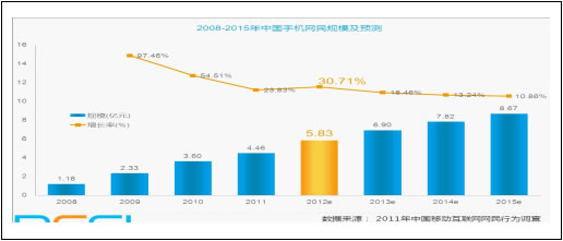 根据DCCI中国移动互联网市场观测报告表明,2011年中国移动互联网市场规模达到311亿,相比2010年增长97.31%,2012年将继续快速增长,达到737.7亿。以上数据表明,移动互联网市场是又一个金矿。而且随着商业经济的发展,传统的互联网市场明显出现停滞,正如前文所说,移动互联网有着普及率高,使用简单,距离用户近等多个特点,而移动互联网市场如野草般旺盛的生长着。