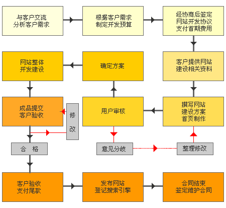 双方以面谈、电话或电子邮件等方式, 针对项目内容和具体需求进行协商,产生合同主体及细节。双方认可后,签署《网站建设合同》。合同附件中包含《网站制作需求书》。并根据合同协议,客户支付第一期网站建设费用。