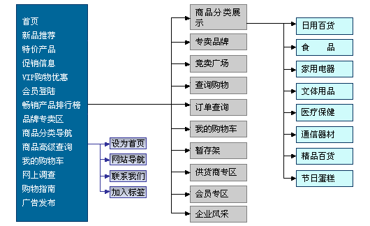 基本结构: (以网上商城电子商务网站为例)